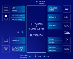 Naturalmente, c'è anche una NPU migliorata per le applicazioni AI. La NPU dei processori Lunar Lake offre una prestazione di 48 TOPS e si posiziona quindi tra le NPU di Qualcomm (45 TOPS) e AMD (50 TOPS). Per l'utente, il numero in sé non è particolarmente rilevante all'inizio, l'unica cosa importante è che Lunar Lake soddisfa i requisiti NPU di Microsoft per un laptop Copilot+. Tuttavia, le funzioni complete di Copilot+ non sono ancora disponibili al momento del lancio sul mercato, ma saranno aggiunte successivamente tramite un aggiornamento.