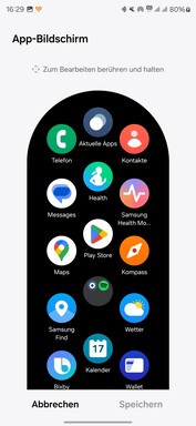 Invece di una lunetta rotante, Samsung si affida a una lunetta digitale. I movimenti sul bordo del display vengono riconosciuti come movimenti rotatori, che possono essere utilizzati per scorrere le piastrelle o i menu, ad esempio. Il gesto del doppio tocco con il pollice e l'indice non ha un'assegnazione fissa; la funzione cambia a seconda dell'applicazione selezionata. Può essere utilizzato per terminare un timer o per mettere in pausa o riprendere la riproduzione musicale. Se esiste una funzione corrispondente in un programma, appare un simbolo adatto. Il comando viene sempre riconosciuto in modo affidabile nel test.