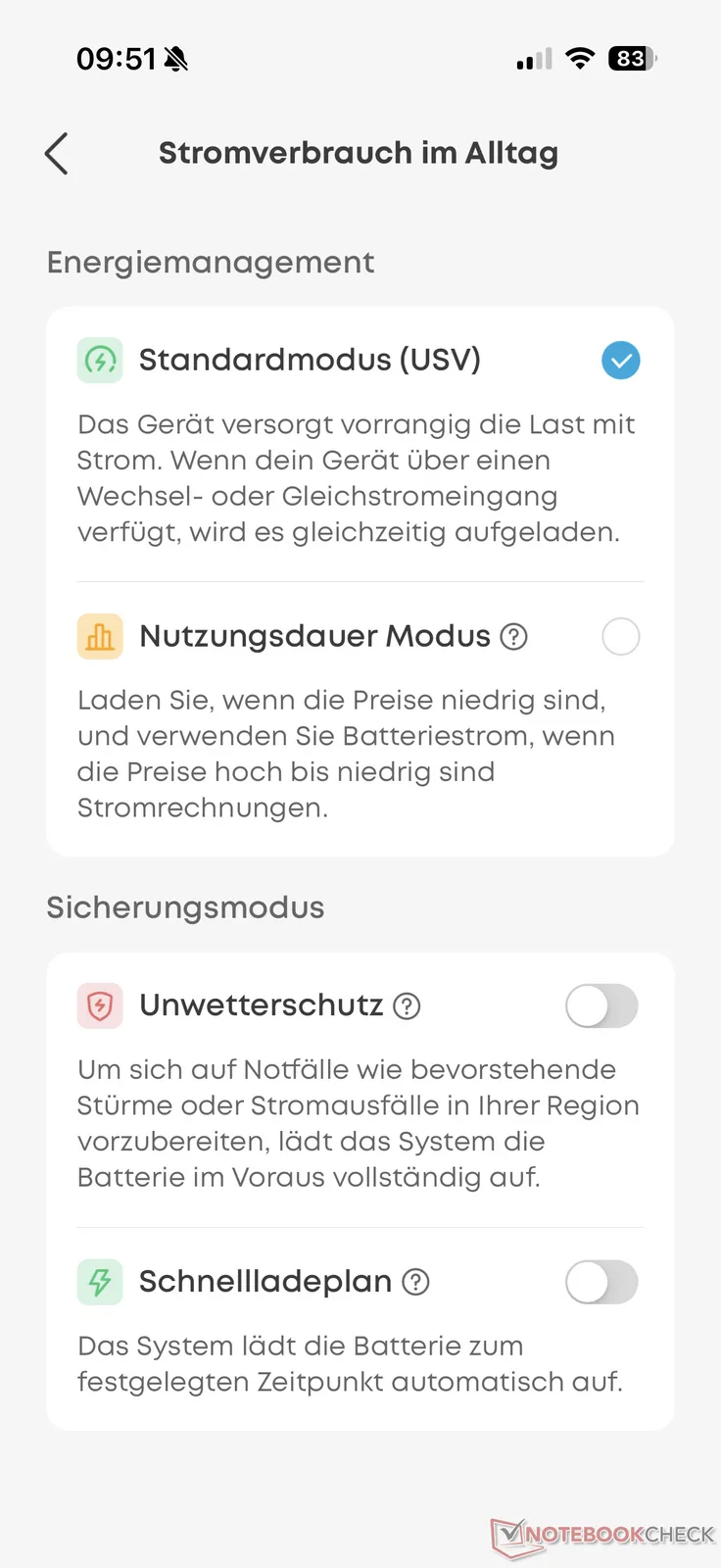 Anche se ci è sfuggito sulla F3000il C2000 Gen 2, come il C1000 Gen 2dispone di diverse modalità. Ad esempio, la centrale elettrica può essere impostata per caricarsi automaticamente nei momenti in cui i costi dell'energia sono particolarmente favorevoli, in combinazione con una tariffa elettrica dinamica. Tuttavia, non c'è ancora una connessione diretta.
