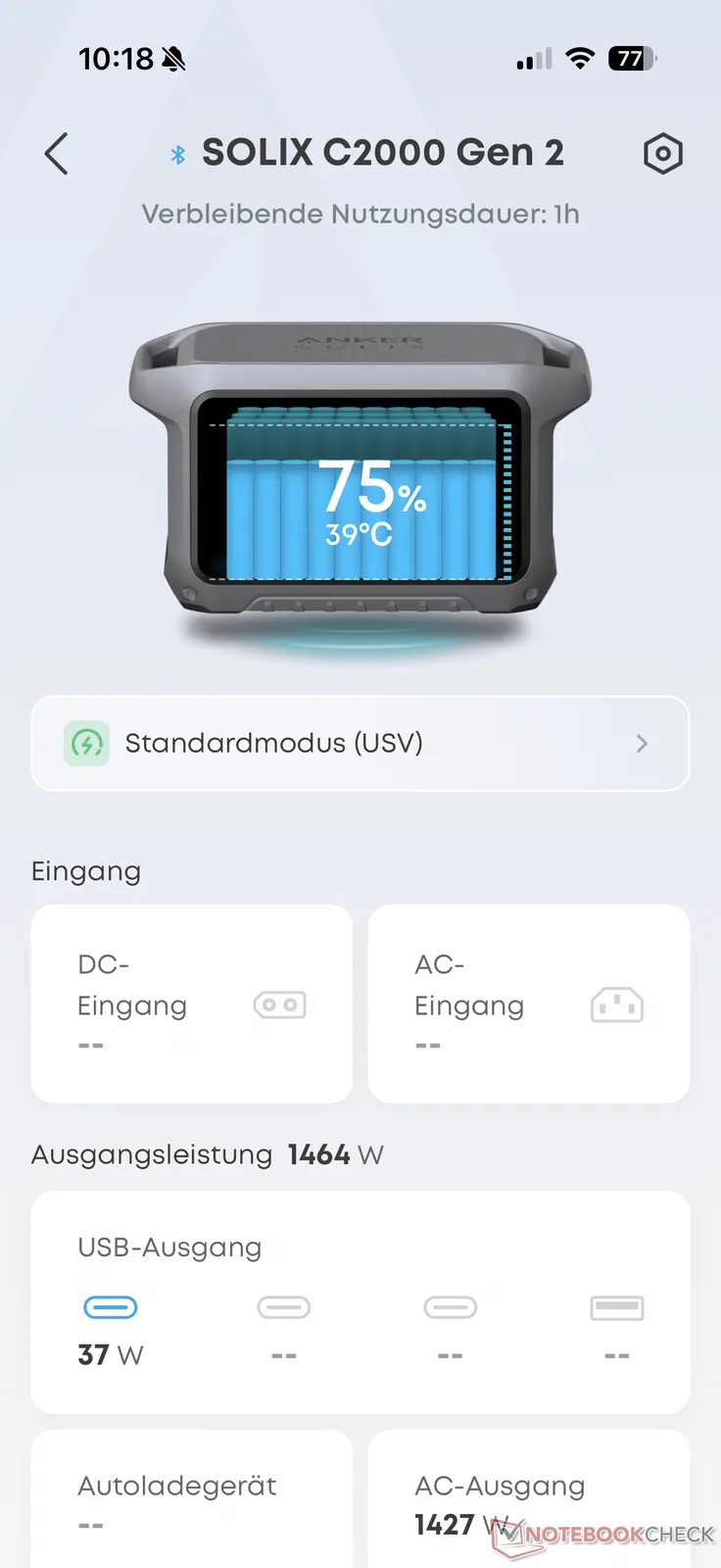 Tuttavia, non siamo stati del tutto convinti dall'efficienza del funzionamento AC nel test. Come al solito, abbiamo scaricato l'Anker Solix C2000 Gen 2 con un carico continuo di ben 200 W come parte del nostro test. Siamo riusciti a prelevare ben 1.600 Wh della capacità di 2.048 Wh. Questo si traduce in un'energia utilizzabile di poco inferiore al 79 percento, che non è un buon valore. Qui, ad esempio, il più economico Aferiy P280 si è dimostrato più produttivo nel test.