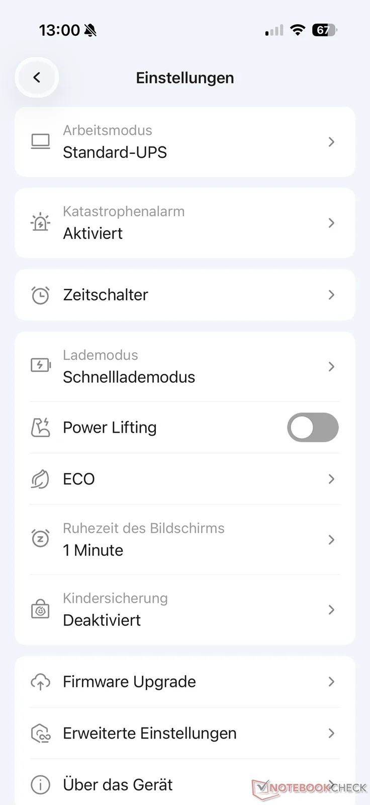 Tramite le impostazioni è possibile accedere a diverse opzioni, come la ricarica, il sollevamento di energia o la modalità ecologica. Sono presenti anche il blocco bambini e gli aggiornamenti del firmware, ad esempio. Tuttavia, avremmo preferito una o due opzioni in più, come la ricarica in orari non di punta.