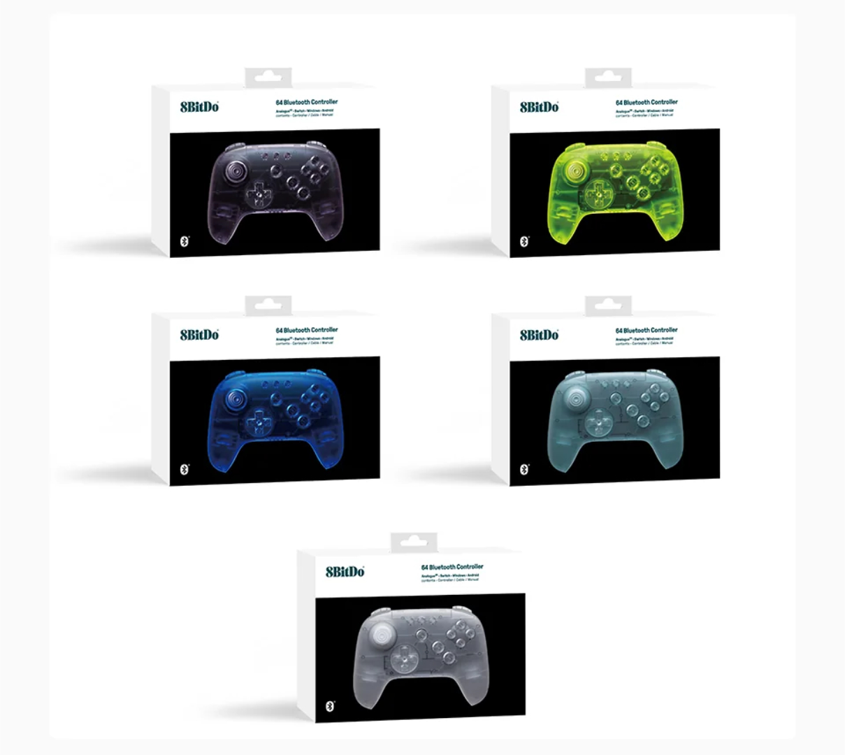 Come mostrano le immagini qui sotto, queste nuove opzioni hanno tutte finiture traslucide. Ispirate ai colori dei prototipi di Nintendo 64, le Edizioni Limitate Prototipo sono disponibili in 'quantità altamente limitate'. Tuttavia, 8BitDo ha fatto questa affermazione per le Edizioni Limitate Funtastic, che sono ancora tutte disponibili al momento della pubblicazione.