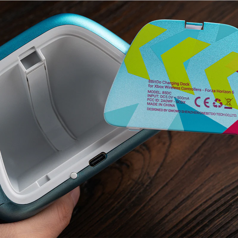 Il dock di ricarica 8BitDo per i controller wireless Xbox - Forza Horizon 6 Limited Edition è frutto di una collaborazione tra 8BitDo, Xbox e Forza Horizon 6. Progettato per funzionare con i controller Xbox Serie X|S, il dock dispone di tre pogo pin per la ricarica, oltre a due magneti per garantire che il controller sia fissato in posizione. Dispone inoltre di uno scomparto per riporre le batterie di ricambio, gli sportelli della batteria e piccoli accessori.