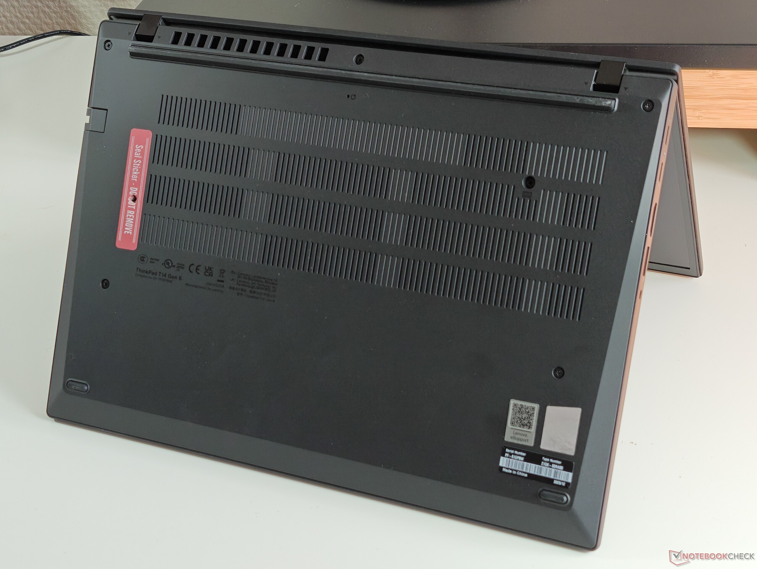 In termini di design del telaio, il Lenovo ThinkPad T14 Gen 6 ha certamente la classica energia nera e squadrata dei ThinkPad, con alcune aggiunte moderne. Tra queste c'è sicuramente la protuberanza della fotocamera sul coperchio, che funge anche da pratica maniglia per aprire il ThinkPad. Purtroppo, non è possibile aprirlo con una sola mano, ma per il resto, la qualità ThinkPad risplende. Il ThinkPad T14 G6 è un PC robusto e stabile, con uno chassis realizzato in plastica e magnesio. Come tutti i ThinkPad neri, la superficie liscia e leggermente gommosa tende a sporcarsi piuttosto facilmente.