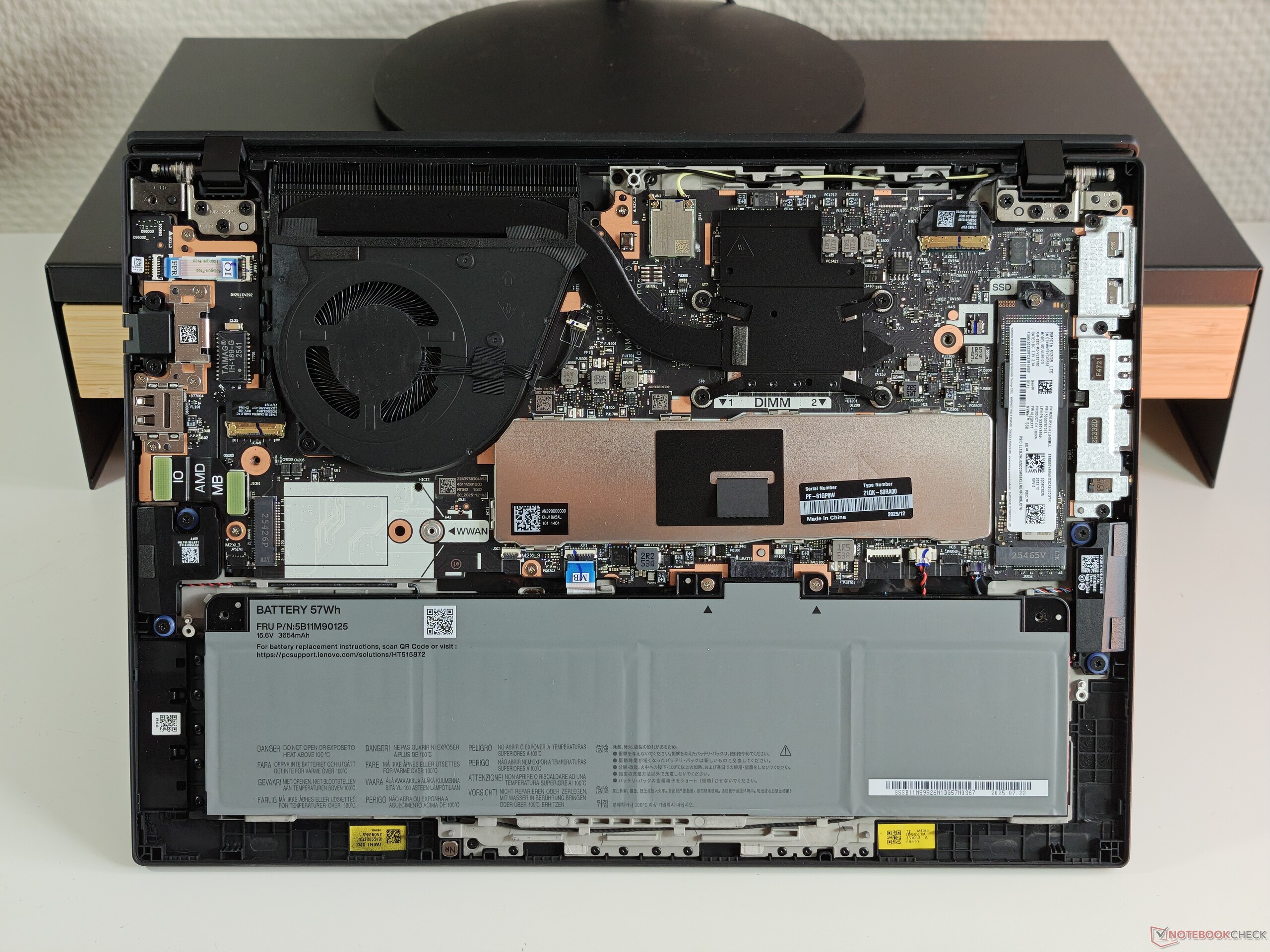 Rispetto ai modelli più vecchi Lenovo ThinkPad T14 Gen 5 AMDla selezione delle porte rimane invariata. Lo stesso vale per il layout interno, il che significa che componenti importanti come la tastiera, la batteria, l'SSD e la RAM sono facilmente riparabili dall'utente.