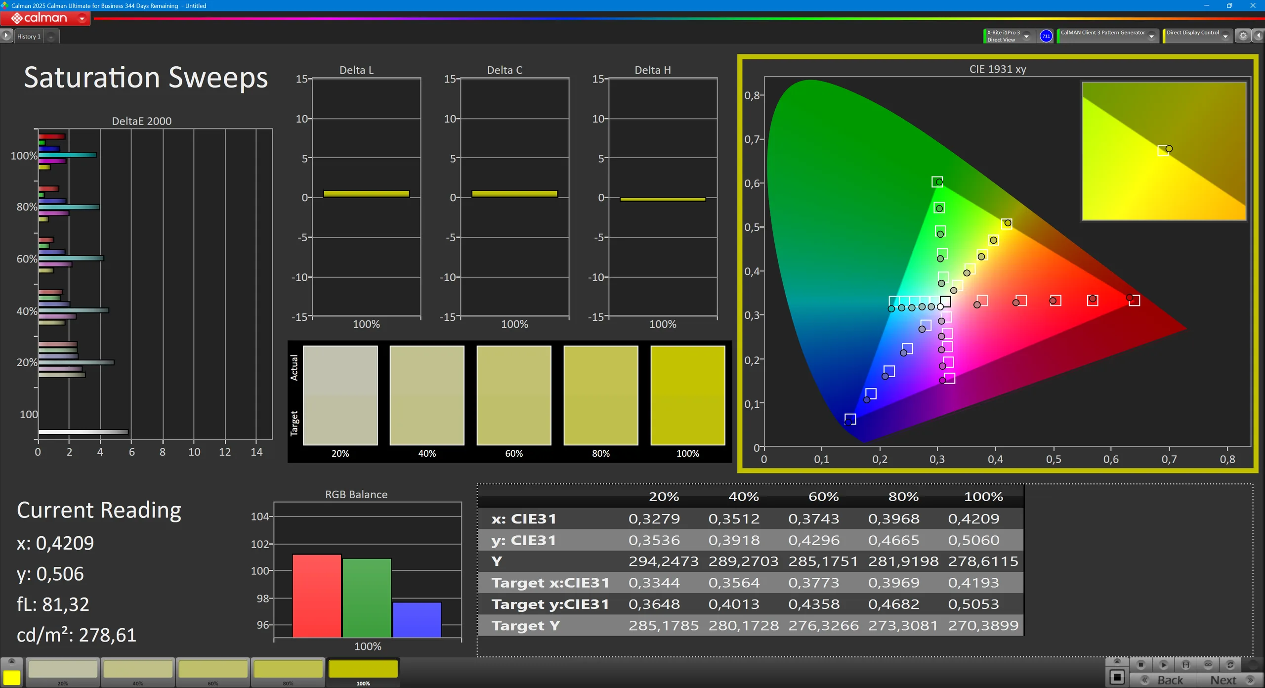 | sRGB Coverage (%) | 98.5 | 100 2% | 56.3 -43% | 58.1 -41% | 96 -3% | 98.3 0% |