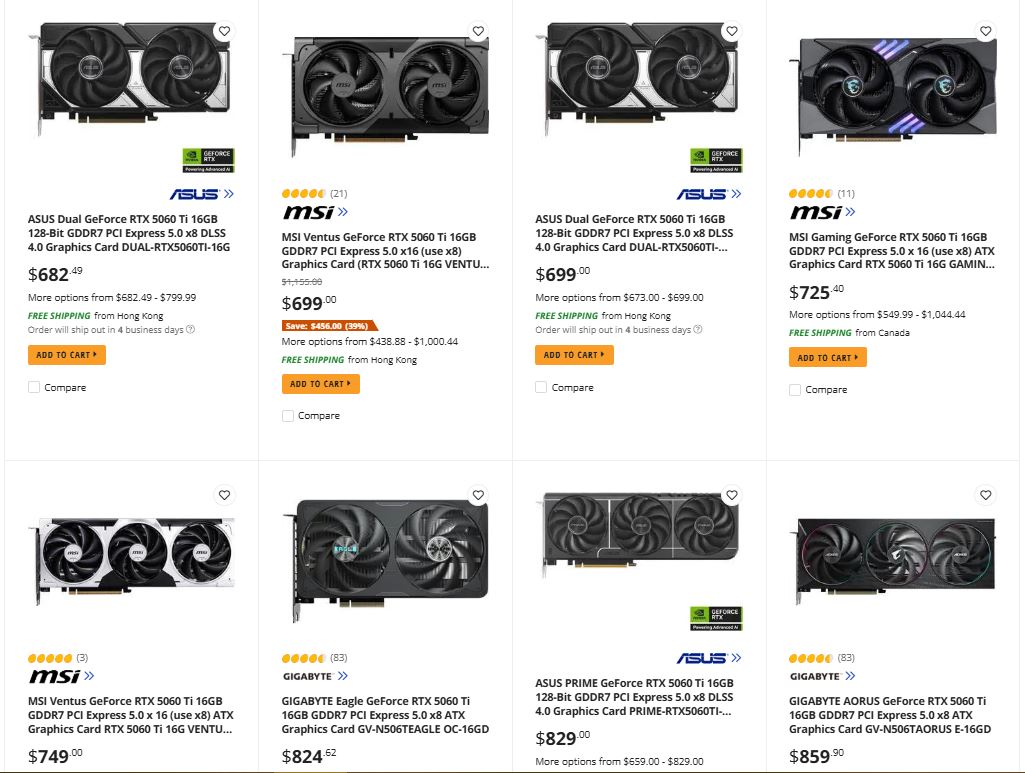 Per esempio, la maggior parte delle RTX 5070 Ti AIB su Newegg sono attualmente vendute a un prezzo molto superiore ai 749 dollari dell'MSRP. Lo stesso vale per la RTX 5060 Ti 16 GB. Fortunatamente, la RX 9070 e RX 9070 XT sono ancora in vendita a prezzi ragionevoli.