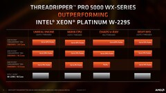 L'azienda ha detto che le moderne caratteristiche di sicurezza come Shadow Stack, che è fondamentalmente il modo di AMD di prevenire gli attacchi control-flow e altri set di funzionalità di classe enterprise sono incorporati nella serie Threadripper Pro 5000 WX a differenza dello Xeon W-3300 di Intel. AMD ha anche evidenziato altri vantaggi rispetto ai processori per workstation basati su Ice Lake, tra cui la disponibilità di un numero maggiore di core, boost più elevati, una cache L3 molto più grande e un numero doppio di corsie PCIe.