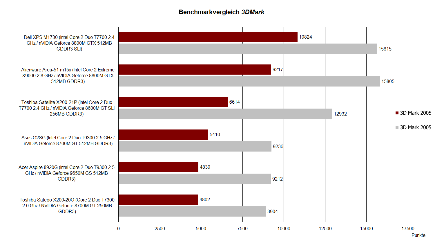 La questione principale della recensione è: dove sono le differenze tra la Nvidia GeForce 9650M GS e la 8700M GT? Abbiamo confrontato l'Acer Aspire 8920G con l'Asus G2SG che ha la stessa CPU (T9300) e la Nvidia GeForce 8700M GT graphics con 512 MB GDDR3 di video RAM.