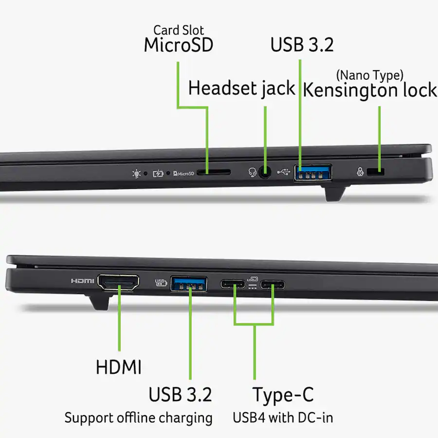 Lo Swift Go 16 SFG16-A71 offre anche la possibilità di scegliere tra Ryzen AI 7 445 e Ryzen AI 9 465 All'interno del suo alloggiamento di 355,5 x 251,2 x 15,9 mm. Con un peso di 1,6 kg, queste varianti AMD contengono solo un pannello IPS da 1200p al momento del lancio. Secondo Acer, questo display offre anche una luminosità di picco di 350 nits e una copertura dello spazio colore sRGB al 100%, con una frequenza di aggiornamento di 120 Hz.