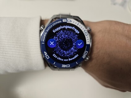 Huawei offre il Watch Ultimate 2 in due varianti di colore. Il modello nero è più sobrio, mentre la versione argento con accenti blu e bianchi è notevolmente più appariscente. Entrambi i modelli sono identici in termini di hardware. La differenza di prezzo di 100 euro deriva dal bracciale a maglie in titanio aggiuntivo incluso nella versione argento/blu.