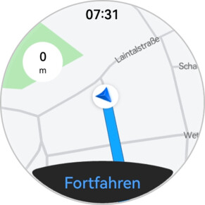 Petal Maps è preinstallato sullo smartwatch e consente la navigazione on-watch. L'applicazione companion deve essere installata anche sullo smartphone abbinato. Sono disponibili sia la guida a freccia che la navigazione su mappa.