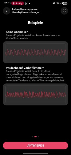 I test possono essere lanciati manualmente sull'orologio posizionando un dito sul sensore X-Tap e richiedono solo un minuto circa. Oltre alle singole letture, il software fornisce anche gli Health Insights, evidenziando i cambiamenti e le tendenze, come una frequenza cardiaca a riposo insolitamente elevata.