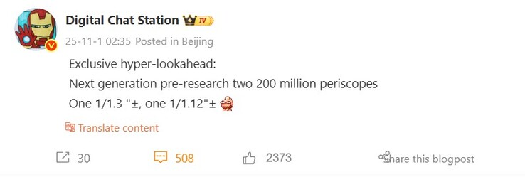 Guardando lontano nel futuro, il leaker cinese Digital Chat Station sostiene in un recente post su Weibo che un potenziale prototipo di Oppo Find X10 Ultra probabilmente non entrerà in produzione di massa prima del 2027, a patto che il progetto non venga abbandonato prima. Secondo il post, Oppo sta sperimentando un doppio sistema di teleobiettivo a periscopio da 200 MP, composto da un sensore da 1/1,3 pollici e da un sensore da 1/1,12 pollici. Oltre a un classico sensore Samsung come l'ISOCELL HP2, le dimensioni del sensore puntano al nuovo sensore Sony da 200 MP, che dovrebbe essere lanciato all'inizio del 2026 con il nome di LYT-910 ed è previsto anche nel Vivo X300 Ultra.