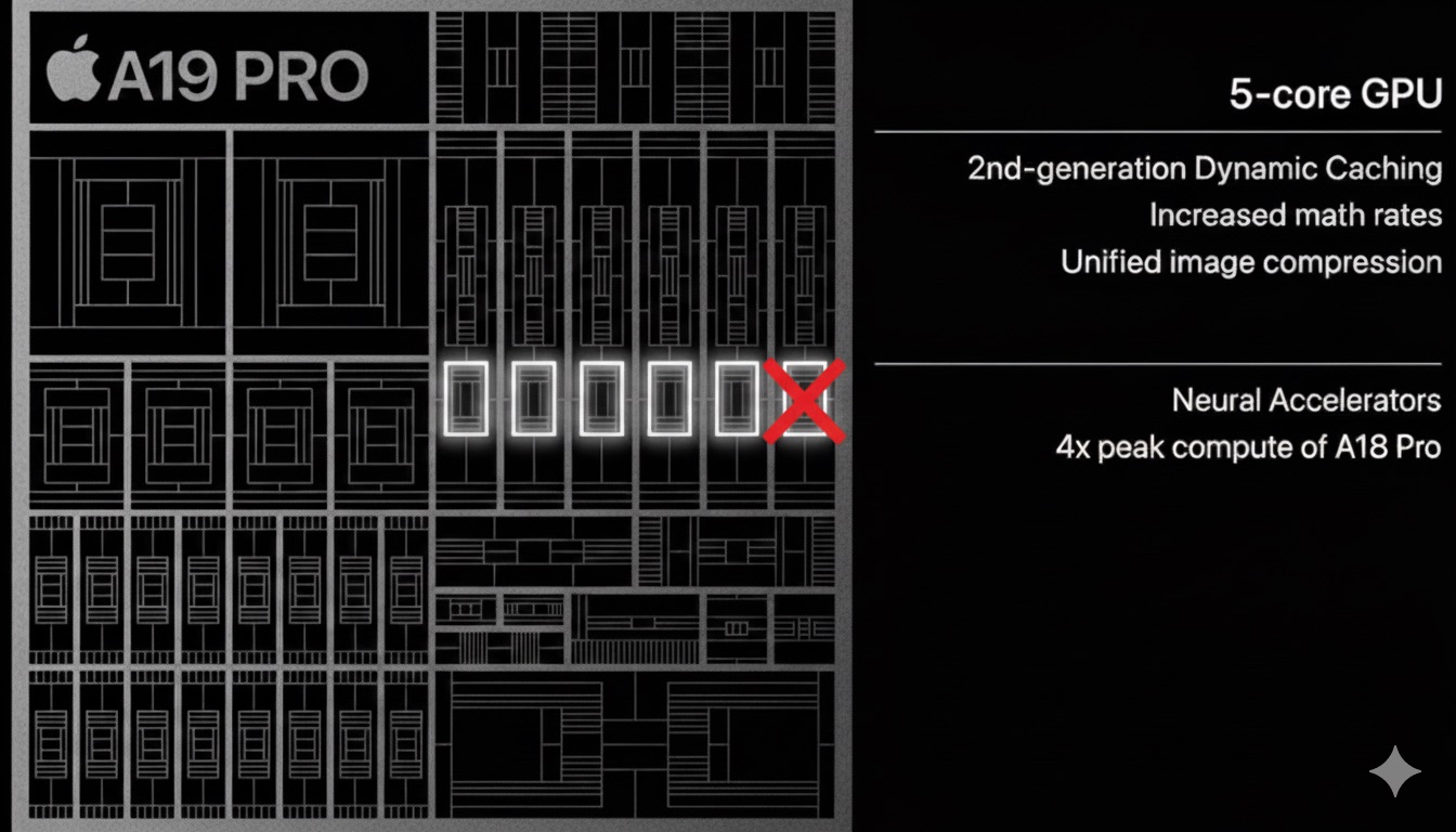 La più lenta GPU A18 non ha solo 1 core in meno; deve anche accontentarsi di un motore di visualizzazione più vecchio e di un codificatore/decodificatore video.
