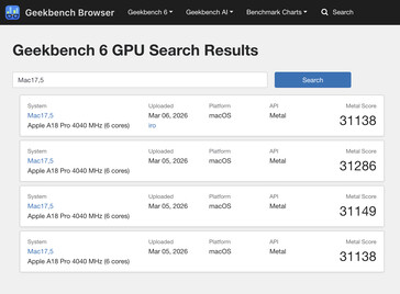 Da un lato, le prestazioni della GPU sembrano essere leggermente superiori a quelle del MacBook Air alimentato da M1 che abbiamo recensito nel 2020 abbiamo recensito nel 2020. All'epoca, quel dispositivo aveva una media di 30.112 nel benchmark Geekbench 6.5 Metal. Nel frattempo, il MacBook Neo restituisce 31.178 nei benchmark elencati finora. Questo risultato è inferiore di circa il 5,7% rispetto all' iPhone 16 Pro Max nonostante contenga il 16,6% in meno di core GPU.