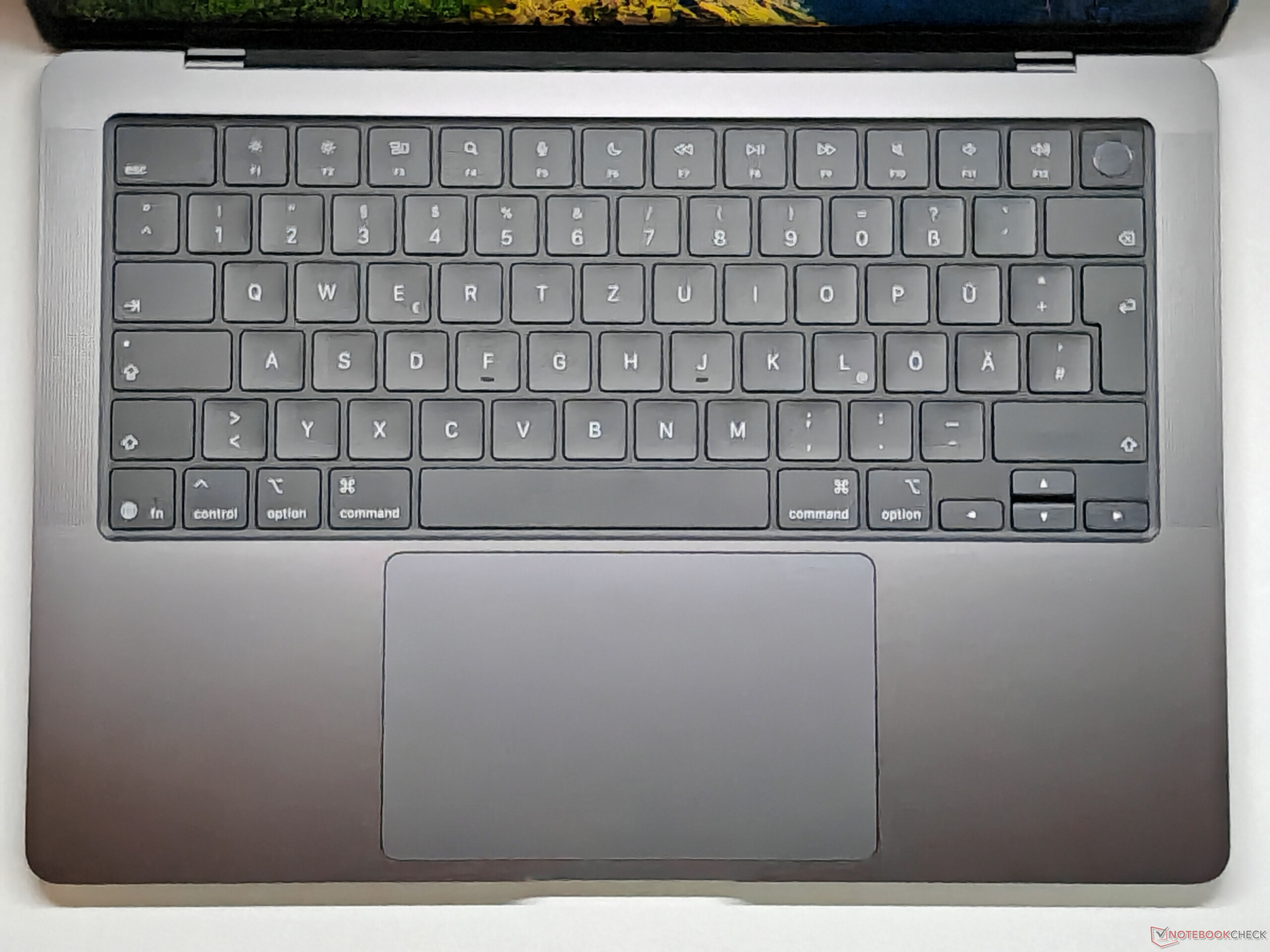 Apple continua a fare affidamento sul noto pannello Mini LED. Gli acquirenti possono anche scegliere una versione opaca (+$150), che avevamo a disposizione durante il nostro test. La qualità dell'immagine soffre minimamente a causa della superficie opaca e i colori non sono altrettanto brillanti, ma in compenso si può lavorare in ambienti luminosi senza dover fare i conti con i fastidiosi riflessi. La retroilluminazione Mini LED sfarfalla costantemente a una frequenza molto alta, appena inferiore a 15 kHz, quindi non dovrebbero esserci problemi per gli utenti sensibili. Purtroppo, a causa di questo sfarfallio, non siamo riusciti a determinare con precisione i tempi di risposta dello schermo, quindi i nostri risultati di misurazione hanno un'importanza limitata. Insieme alla frequenza di aggiornamento di 120 Hz, non ci sono problemi di ghosting visibile.