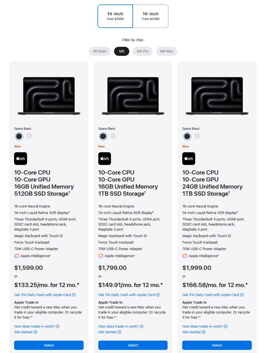 Appleil nuovo MacBook Pro da 14 pollici è ora ufficiale, alimentato dal chip Apple M5. Il nuovo modello promette prestazioni più veloci, una maggiore efficienza energetica e un incremento dell'elaborazione AI, mantenendo lo stesso prezzo di partenza di 1.599 dollari (1.499 dollari con i risparmi per l'istruzione). I preordini sono attivi da oggi sul Apple Storecon disponibilità a partire dal 22 ottobre nelle finiture nero spazio e argento.