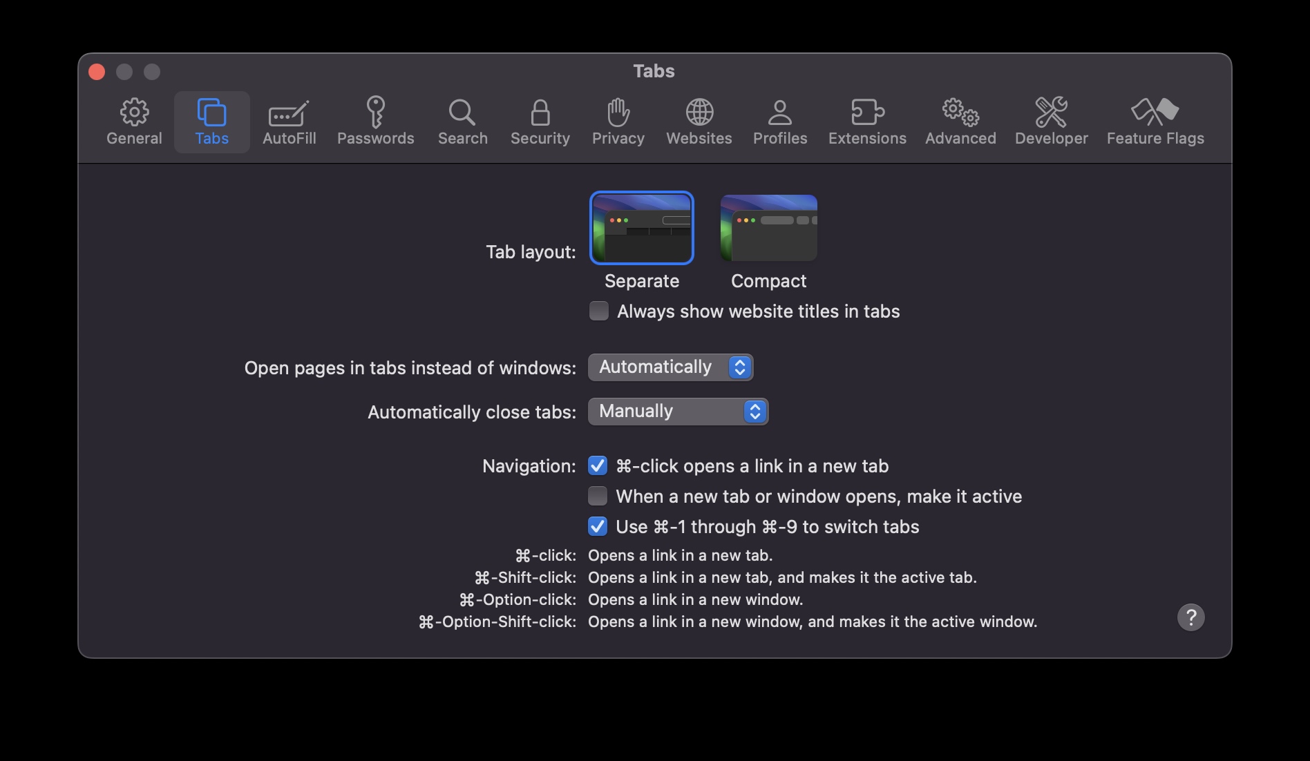 Con il lancio di macOS Monterey nel 2021, Apple ha aggiunto l'opzione per il layout delle schede "compatto" in Safari. Ciò ha permesso di raggruppare le schede nel riquadro principale della finestra, anziché sotto di esso, aprendo una piccola quantità di spazio sullo schermo.