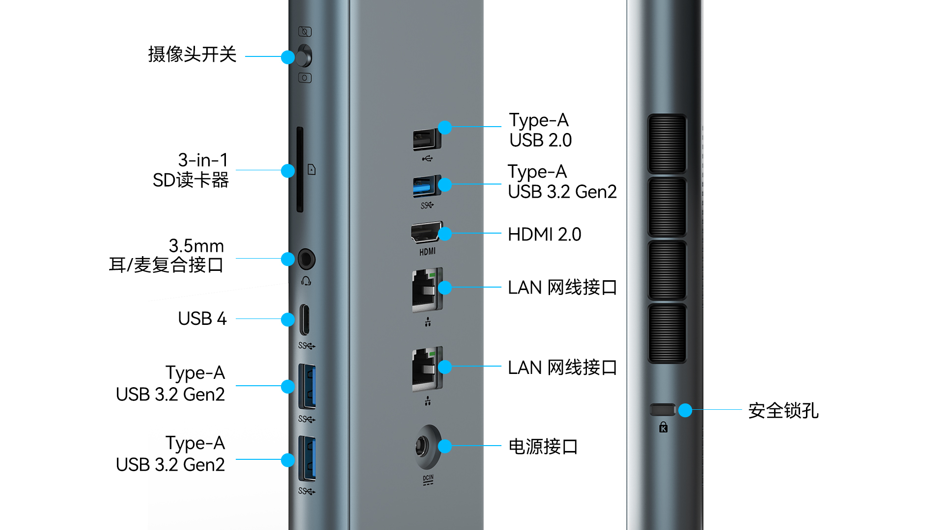 Si tratta del primo PC all-in-one con il processore AMD Ryzen AI Max+ 395aideaONE R27 contiene un display IPS da 27 pollici, anziché l'equivalente OLED del Sixunited AXA33. A parte le differenze tra i pannelli, AideaONE R27 produce anche immagini 4K (3.840 x 2.160) con una frequenza di aggiornamento di 60 Hz. Secondo Seaviv, questo display si trova all'interno di un telaio che misura 15 mm nel suo punto più sottile ed è collegato a un retro in lega di alluminio anodizzato tramite un supporto fisso che supporta regolazioni dell'inclinazione da -5° a +21°.