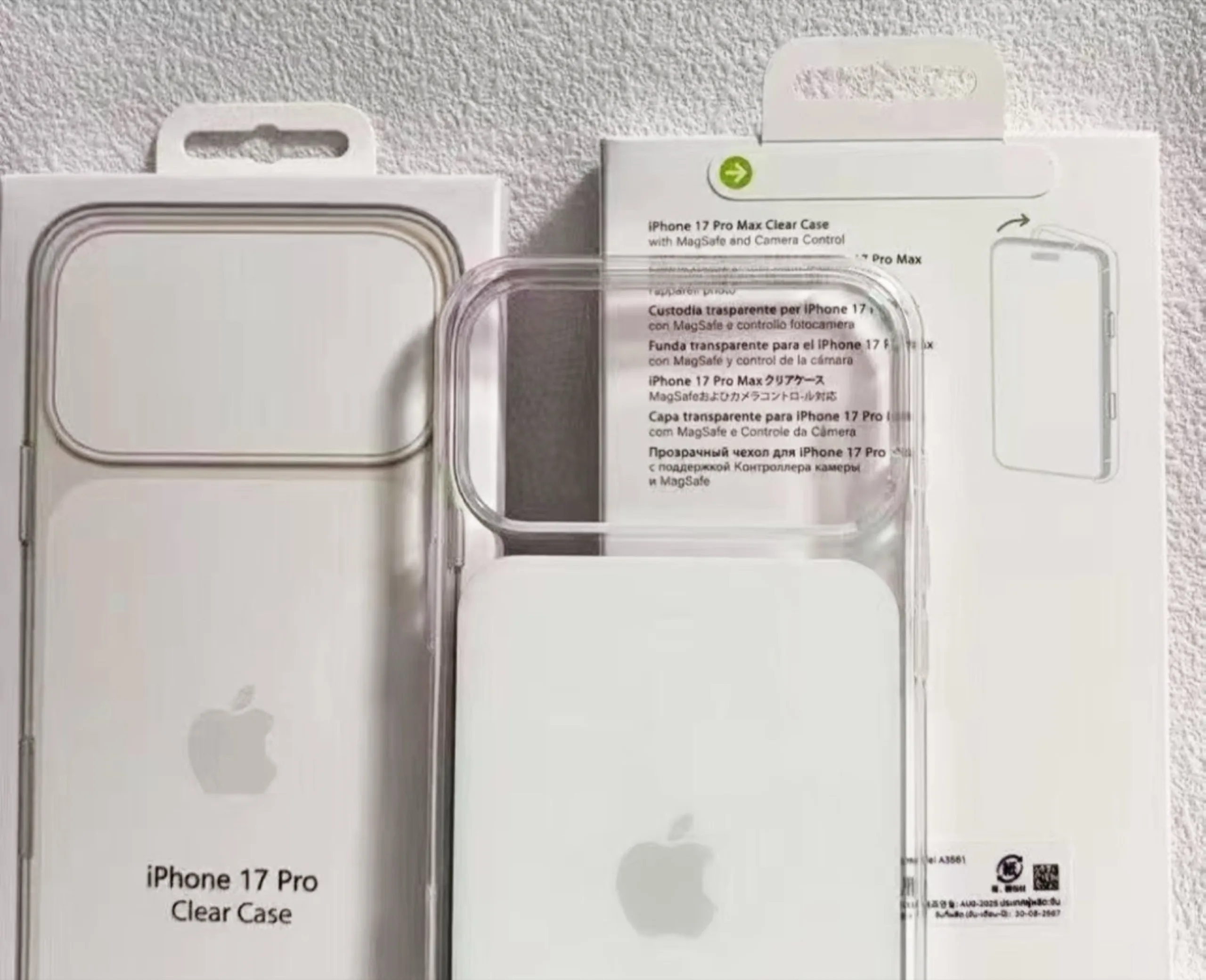 In primo luogo, l'apertura per le fotocamere è significativamente più grande per fare spazio al modulo fotocamera ampliato. In secondo luogo, la Clear Case non è più completamente trasparente. Invece, l'area sotto il modulo della fotocamera è bianca, almeno in una variante. L'intento è quello di centrare il logo Apple in quest'area, anche se sarà collocato più in basso rispetto all'iPhone 16. Tuttavia, il leaker suggerisce che questo cambiamento riguarda solo la Clear Case per i due modelli Pro