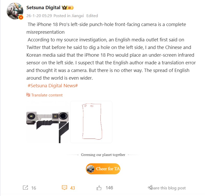Ora, un leaker cinese piuttosto noto ha chiarito la situazione. A quanto pare, queste indiscrezioni si basavano su fughe di notizie mal interpretate provenienti dalla Cina e dalla Corea, che riguardavano un sensore a infrarossi nascosto sotto il display nell'area superiore sinistra dello schermo. Proprio la scorsa settimana, abbiamo riportato i post di Digital Chat Station, che ha parlato di una Dynamic Island più piccola, ma non ha fatto esplicitamente riferimento a un foro come quelli che si vedono comunemente sui telefoni Android. Ad ogni modo, sembra che questo design del display piuttosto controverso con un foro nell'angolo superiore sinistro non si realizzerà mai.