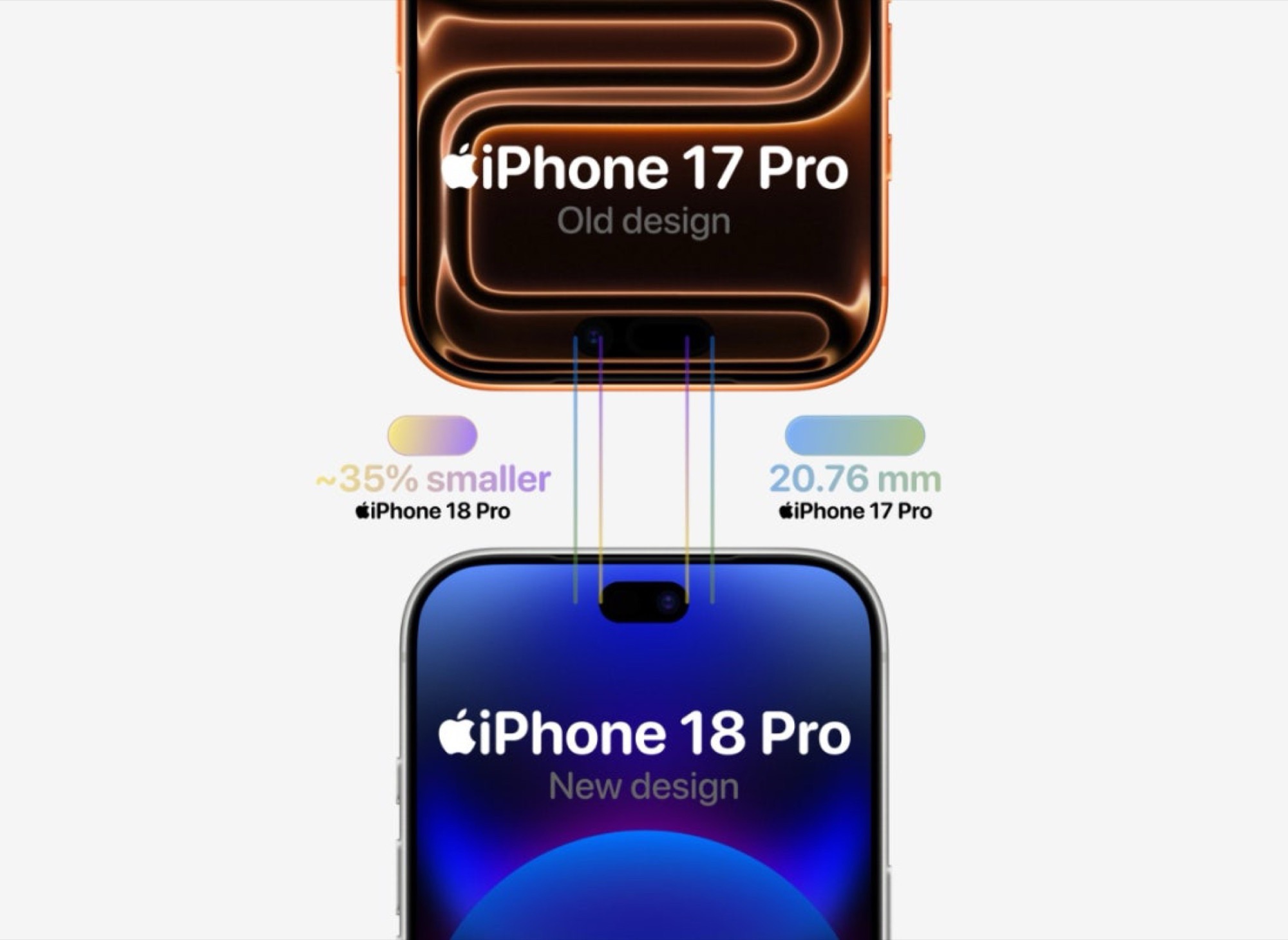 Secondo un'immagine di confronto condivisa dal leaker yeux1122questa modifica potrebbe ridurre le dimensioni del foro dell'iPhone 18 Pro di un notevole 35% rispetto all'iPhone 17 Pro. Il ritaglio risultante è più stretto, pur mantenendo la stessa altezza.