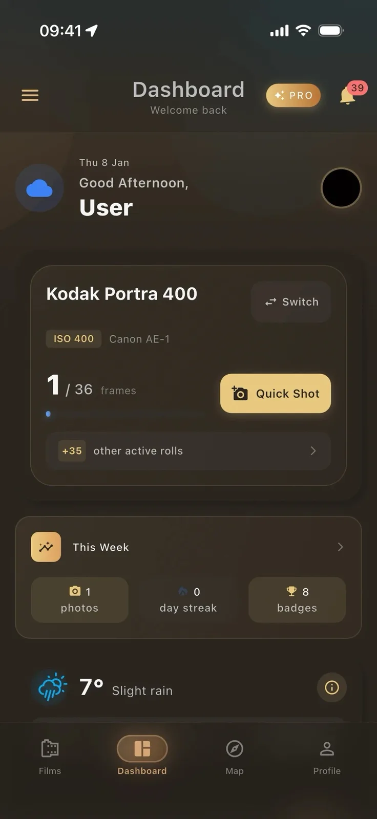 L'applicazione consente di gestire contemporaneamente diversi rullini di pellicola. Da un lato, l'app funge da esposimetro quando scatta le foto, facilitando la selezione della velocità dell'otturatore e dell'apertura corretta quando si utilizza una vecchia fotocamera senza un esposimetro integrato. Dall'altro lato, l'app consente anche di aggiungere metadati, tra cui la data e l'ora, nonché informazioni sul meteo attuale e sulle coordinate GPS. Se lo desidera, può aggiungere una descrizione