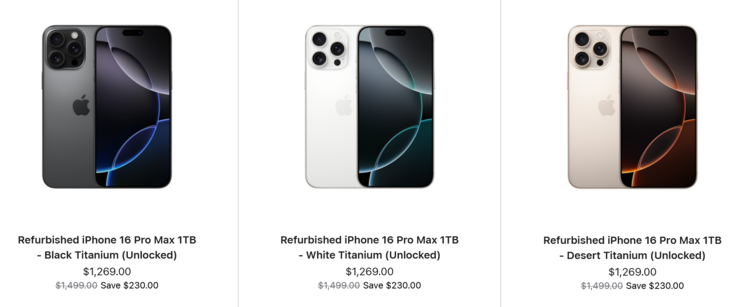 Alcuni di questi modelli possono essere trovati più economici come dispositivi ricondizionati altrove. Ad esempio, un iPhone 16 in condizioni "Eccellenti" con 128 GB di spazio di archiviazione può essere acquistato da Black Market per 574 dollari, 45 dollari in meno rispetto all'equivalente ricondizionato di Apple