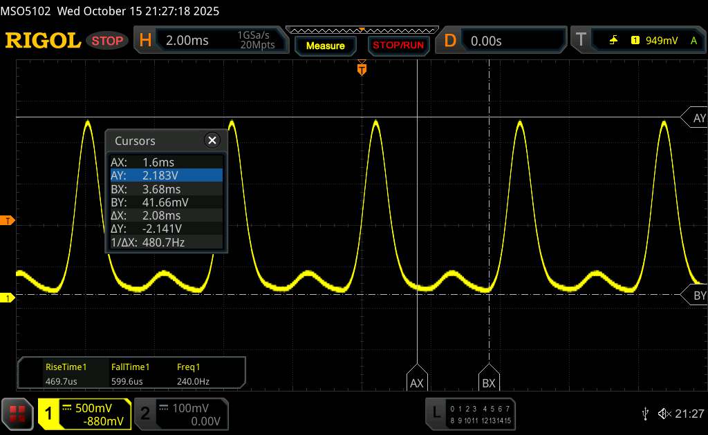 (+) | alti lineari (3% delta rispetto alla precedente frequenza)