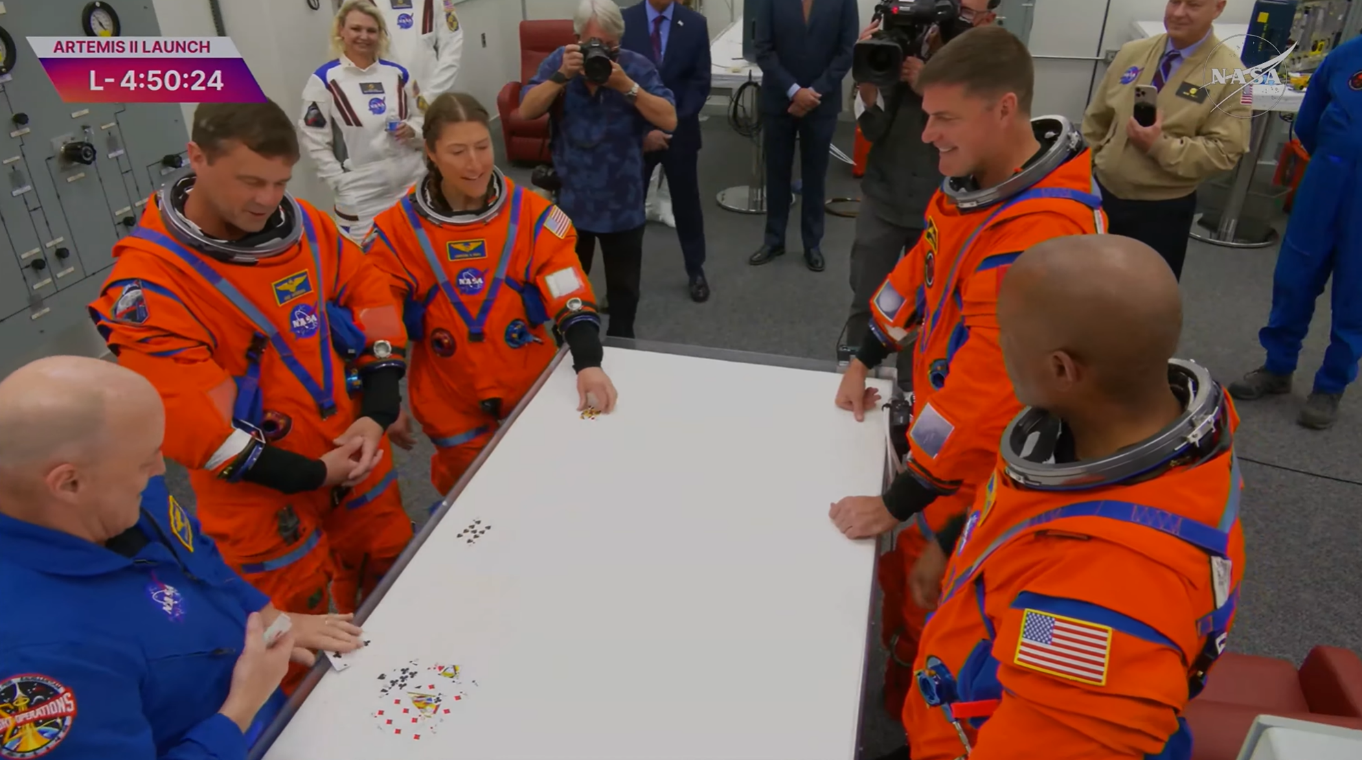 Tuttavia, prima di dirigersi verso il cielo, l'equipaggio ha eseguito un curioso rituale: secondo una tradizione di lunga data, gli astronauti hanno giocato a carte finché il comandante non ha perso. Lo scopo di questo gioco è quello di 'esaurire' la sfortuna del comandante, lasciando solo la buona sorte per la missione stessa.