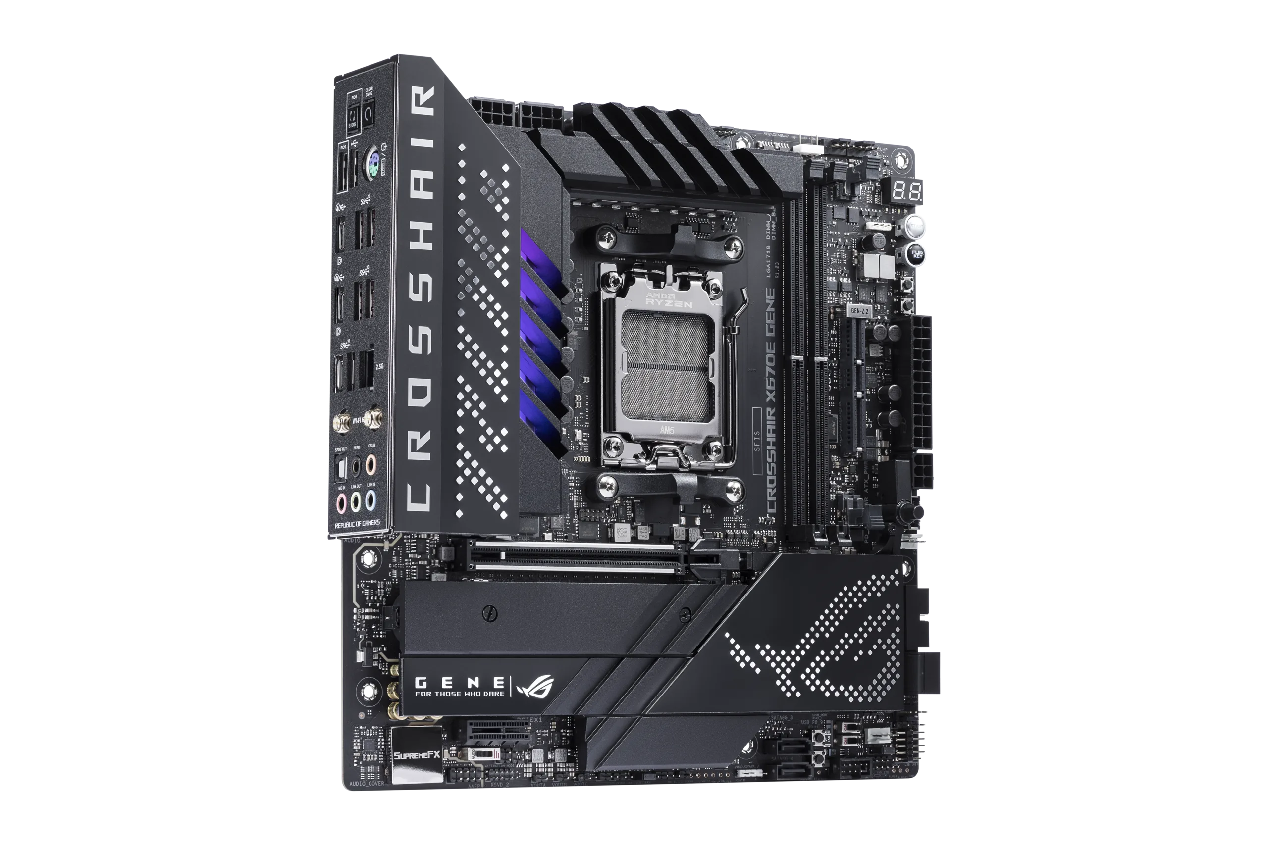 La nuova scheda Crosshair è decisamente la prima del gruppo e viene presentata come la risposta microATX alla X670E Extreme.X670E Extreme. È affiancata dalla ROG Strix X670E-I Gaming WiFi mini-ITXche dispone di uno dei gruppi diagnostici a LED integrati di Asus e di uno scudo I/O premontato.