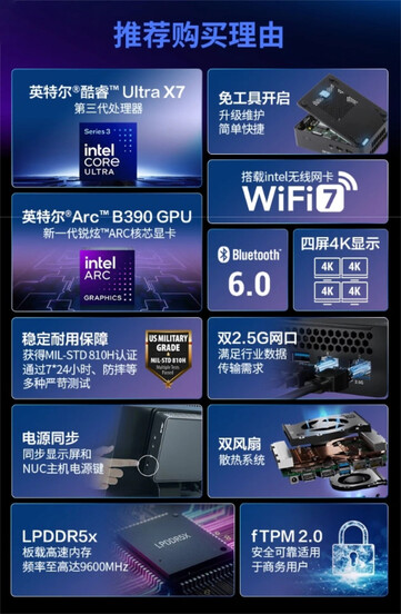Inizialmente, Asus aveva indicato che il NUC 16 Pro sarebbe stato disponibile con un processore Core Ultra X9 Series 3 e un processore Arc B390 iGPU. Poi all'inizio di questo meseha consegnato solo un Core Ultra 7 356H variante. Al prezzo di 999 dollari, questa versione è caratterizzata dalla minore Intel Graphics 4 Xe3 con 4 core GPU.