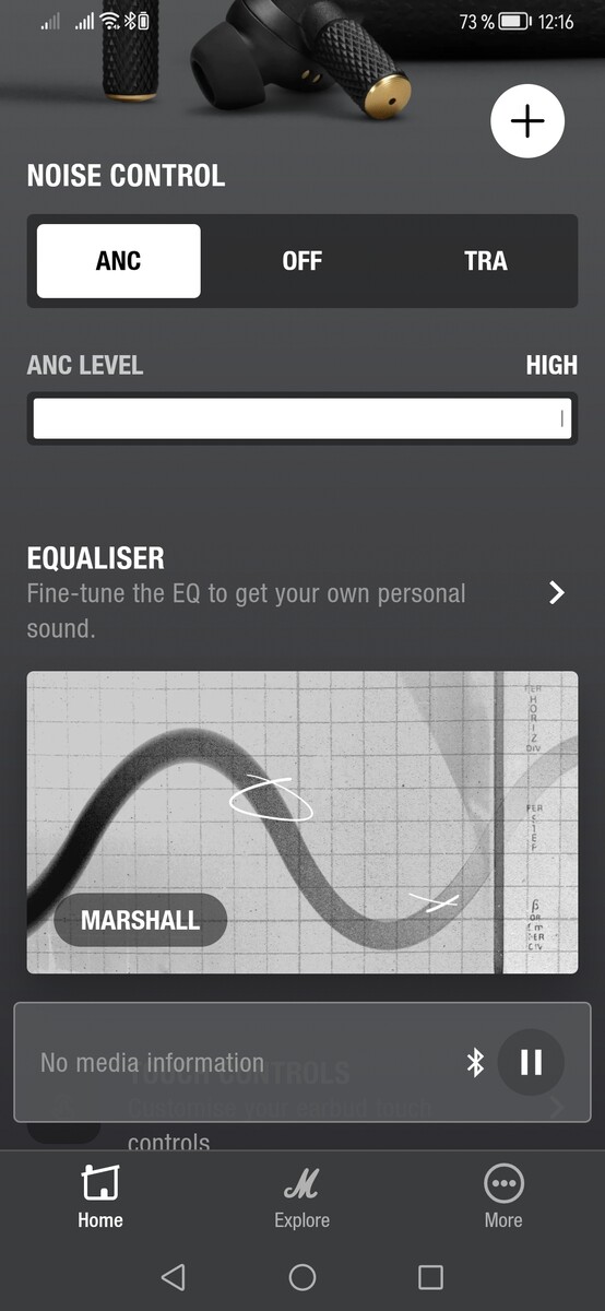 L'applicazione stessa è strutturata in modo molto chiaro e funzionale. La modalità ANC e la trasparenza possono essere regolate in tre fasi (Bassa, Media, Alta). Inoltre, ha accesso a un equalizzatore che, accanto al suono Marshall impostato e a varie altre preimpostazioni, le consente di effettuare regolazioni manuali. Qui, può anche impostare almeno una delle azioni touch personalizzate in base alle sue esigenze. Successivamente, ha la possibilità di controllare il volume attraverso i comandi touch, dopotutto. Purtroppo, in questo modo si perde la funzione di poter passare dalla modalità ANC a quella di trasparenza. Gli sviluppatori avrebbero dovuto utilizzare il comando touch di Spotify per questo, perché preferiremmo di gran lunga rinunciare a questa funzione.