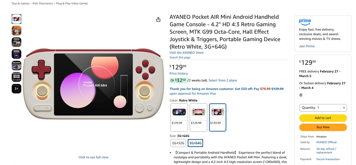 Ora, Ayaneo sembra aver soddisfatto tutti i suoi pre-ordini, dato che il palmare è ora disponibile per l'acquisto su Amazon. Anche se costa un po' di più rispetto all'acquisto diretto dal sito web del produttore, è meglio acquistarlo su Amazon.