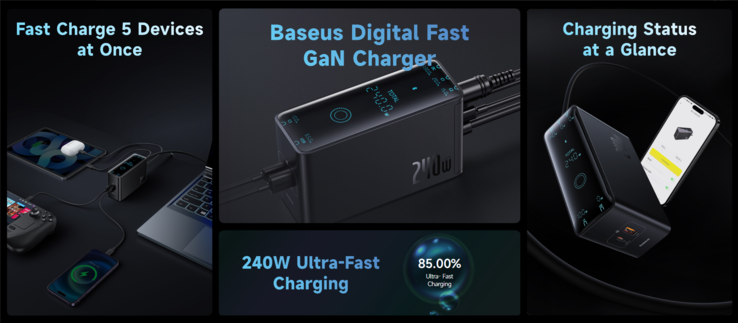 Il nuovo Baseus 240W Desktop Fast Charger sarà disponibile in nero, tuttavia, e si dice che possa caricare fino a 5 dispositivi contemporaneamente in modo sicuro tramite CA nonché tramite USB tipo-C PD 3.1, con un nuovo "stato di carica in tempo reale RedMagic 150W GaN Charger reaches ~US$50,000 mark in crowdfunding campaign " e il supporto dell'app "a colpo d'occhio".