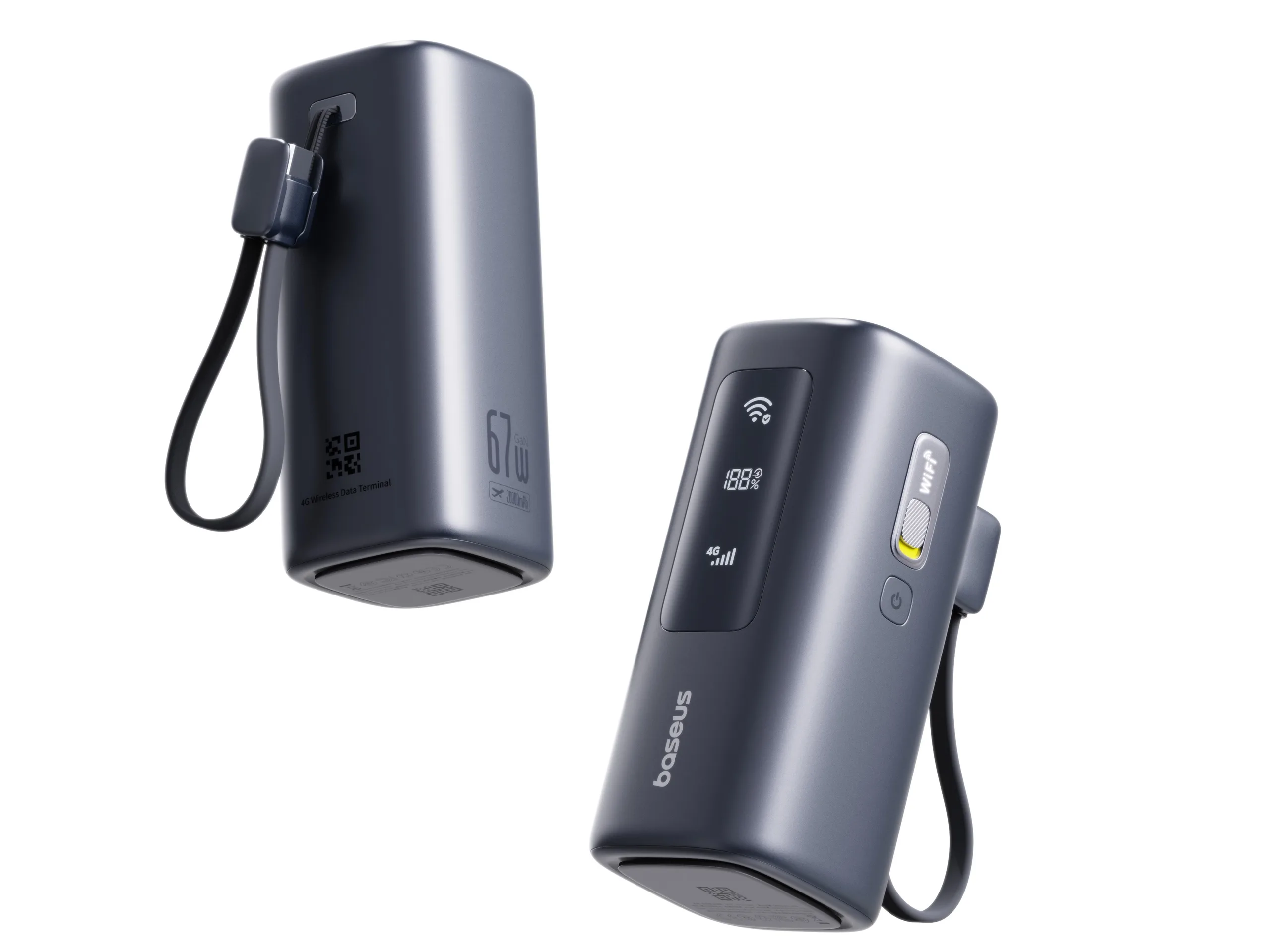 L'imminente alimentatore di Baseus può anche essere utilizzato per ricaricare i dispositivi tramite tre porte USB-C e USB-A, offrendo un'uscita fino a 67W. È presente anche un cavo USB-C integrato e l'ingresso USB-C massimo per ricaricare il dispositivo è di 65W. La Baseus EnerGeek GX11 4G MiFi Power Bank misura 6,1 x 2,2 x 2,0 pollici (~155,7 x 54,6 x 49,5 mm).