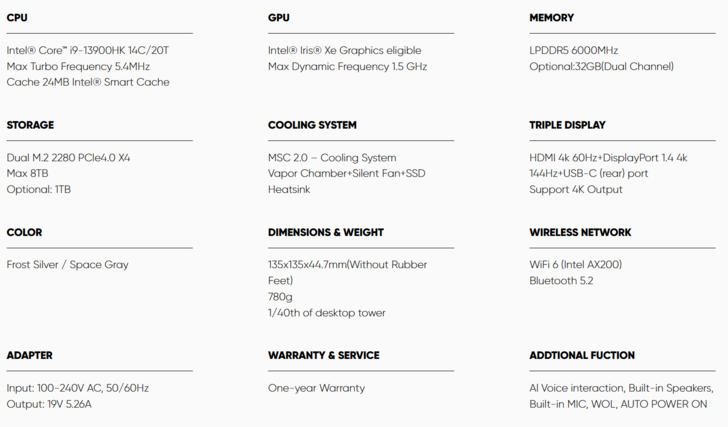 A differenza di altri mini PC lanciati di recente, SEi13 Pro non dispone di una porta OCuLink. Non dispone nemmeno di una porta USB4, quindi supporto eGPU è praticamente fuori questione. Tuttavia, Beelink sottolinea che l'iGPU Iris Xe Graphics G7 del mini PC può gestire carichi di lavoro grafici leggeri.