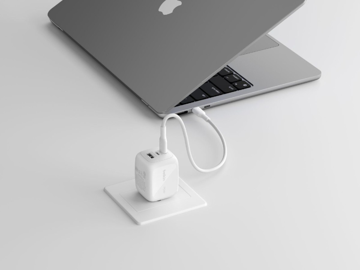 Come accennato, l'adattatore Belkin può erogare 70W attraverso le due porte USB-C e una USB-A aggiuntiva, in modo simile al caricatore Anker 70W a 3 porte Anker 70W Caricatore a 3 porte. Ciascuna porta USB-C può erogare l'intera potenza di 70W da sola, con una suddivisione della potenza a 45W/25W o 45W/22,5W quando sono collegati due dispositivi, e 45W/12W/12W quando sono in uso tutte e tre le porte. In pratica, ciò significa che può gestire comodamente un notebook come il macBook Air M4 da 15 pollici mentre carica altri due gadget a lato.