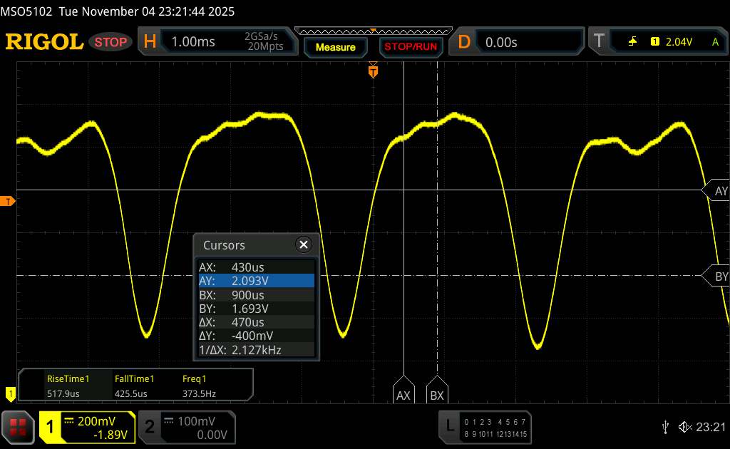 Vivo equipaggia il suo smartphone compatto con una regolazione della luminosità PWM a 2.160 Hz, che abbiamo potuto confermare nelle nostre misurazioni. Inoltre, abbiamo misurato una frequenza di sfarfallio di base di 360 Hz.
