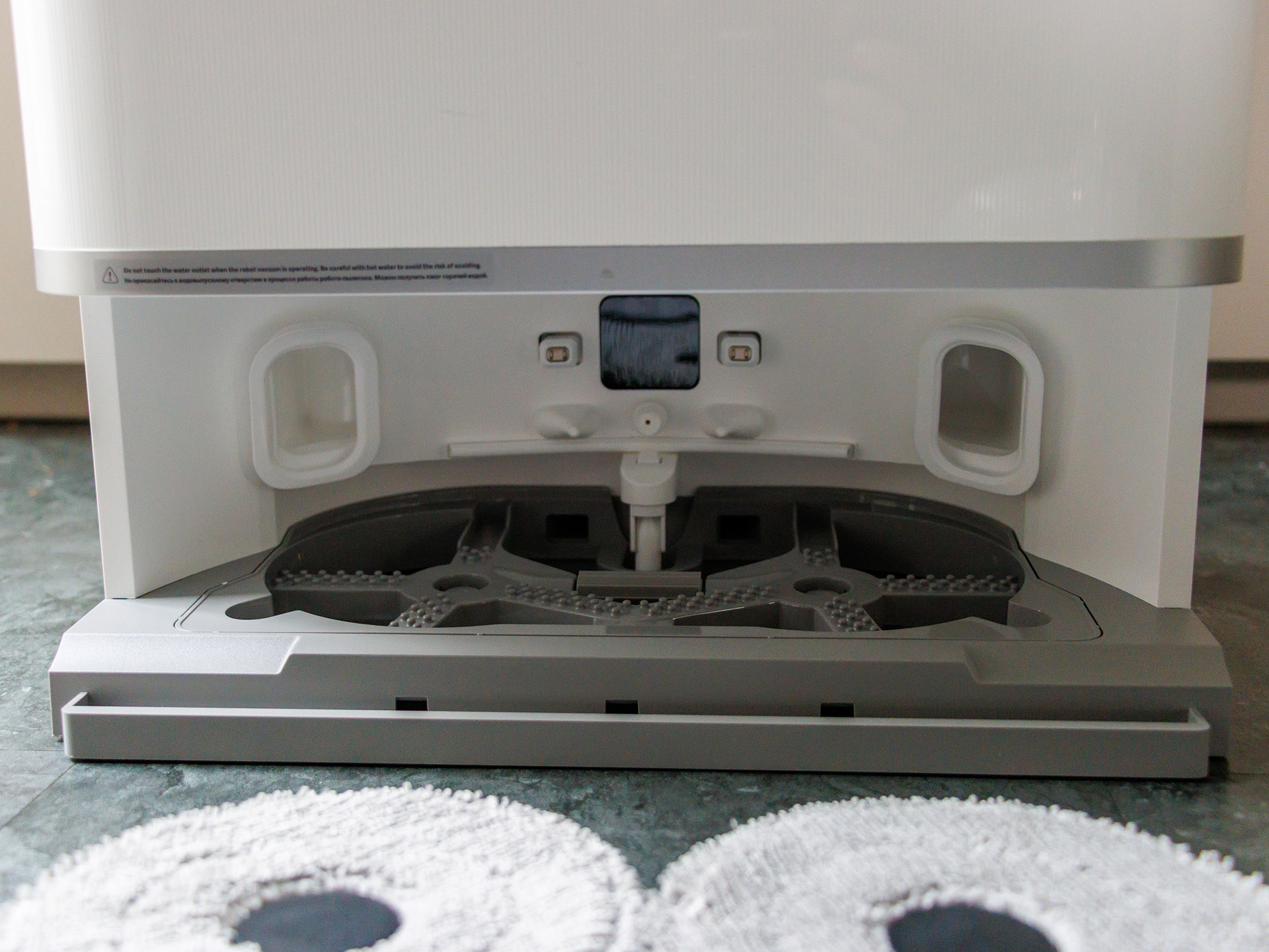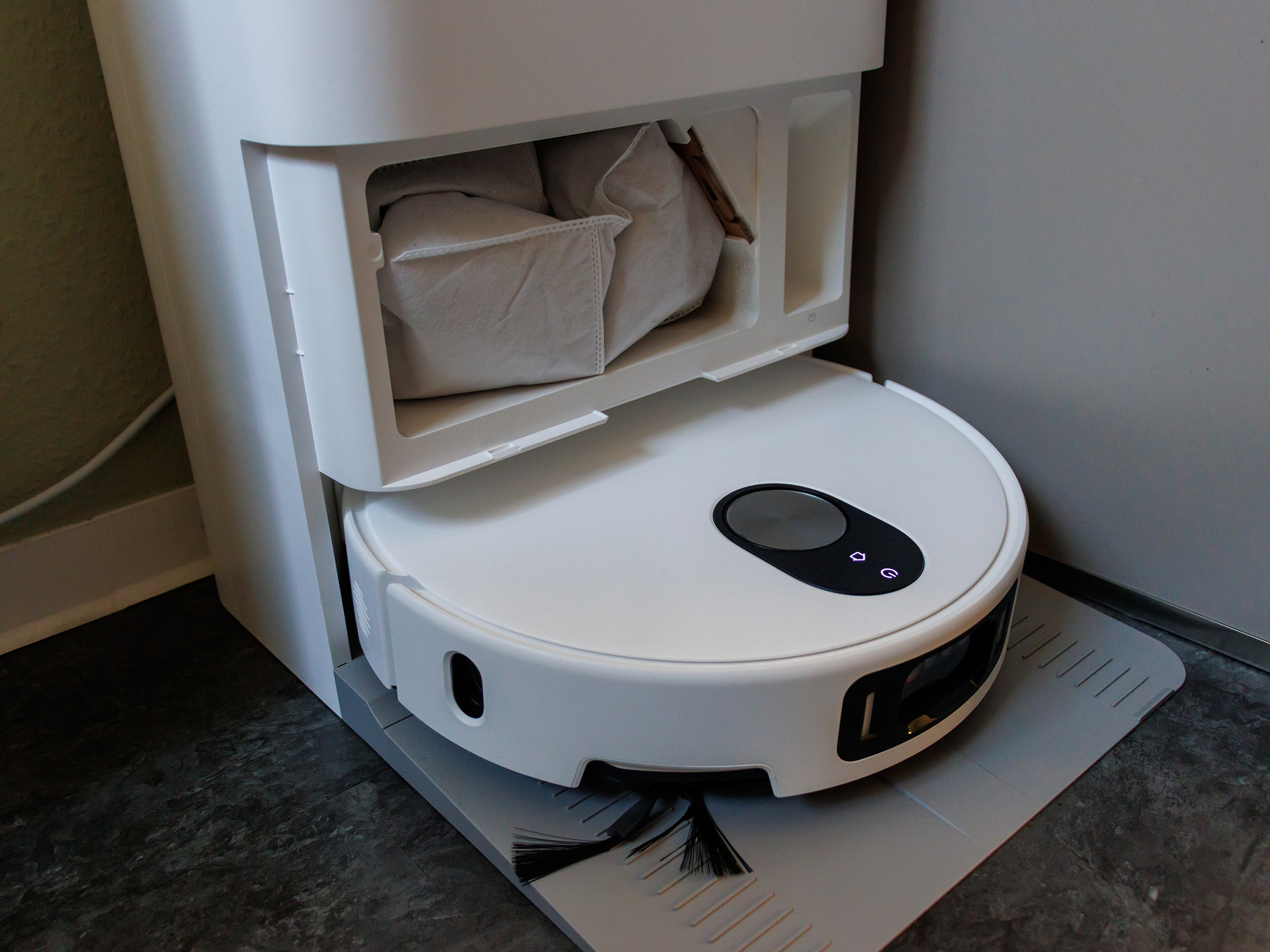 Le sue prestazioni di pulizia brillano sui pavimenti duri, rimuovendo a fondo polvere e macchie con mop rotanti con livelli d'acqua variabili che coprono fino a 240 m² per serbatoio; i bordi vengono puliti efficacemente, ma i tappeti richiedono il livello di potenza massimo e più passaggi, poiché la modalità standard tende a lasciare residui. La stazione all-in-one svuota automaticamente il piccolo contenitore per la polvere, lava i mop a 80 °C e li asciuga, riducendo così la manutenzione e gli odori, ma senza detergenti si limita all'acqua pulita.