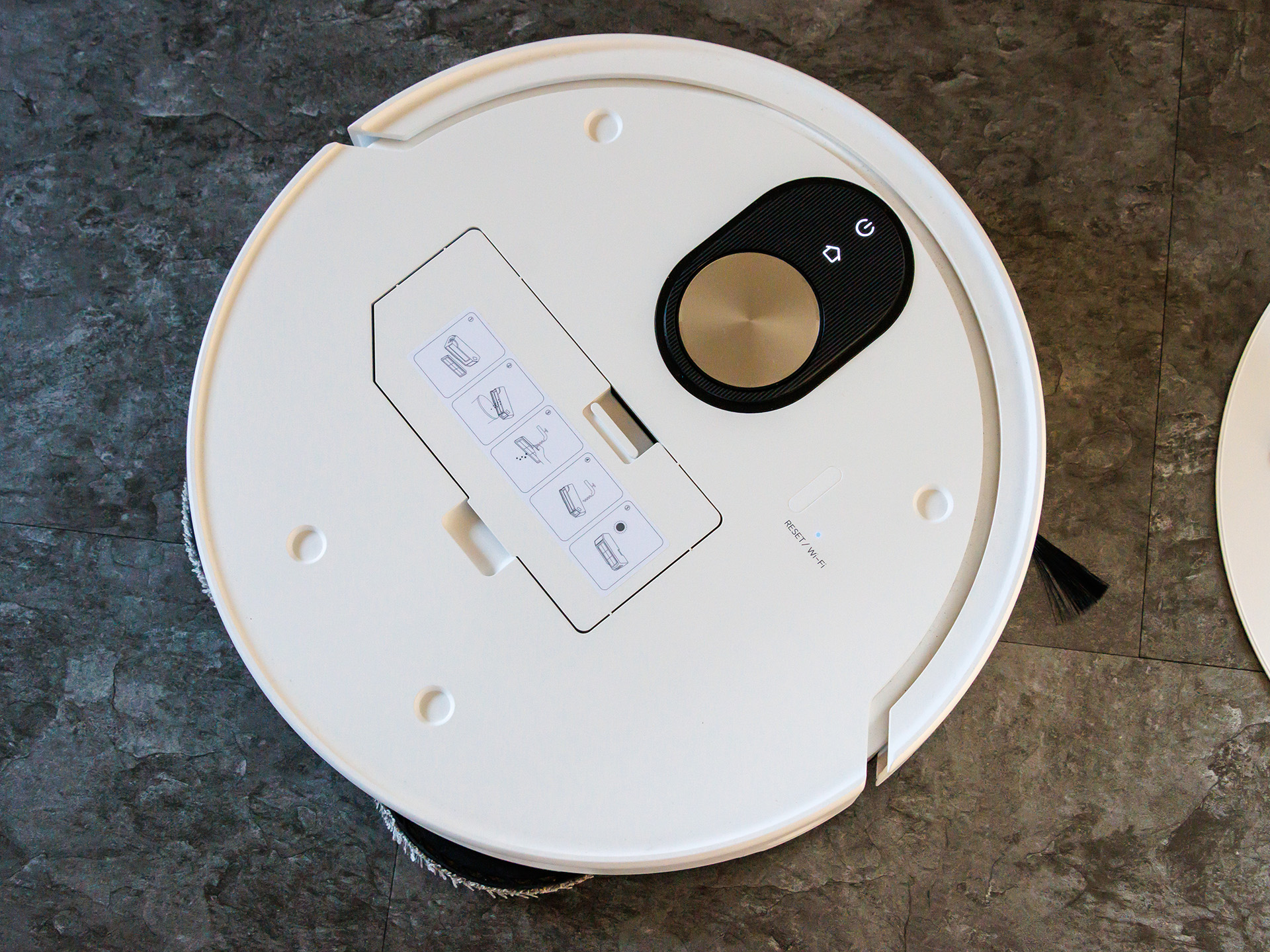 I mop rotanti con livelli d'acqua variabili rimuovono la maggior parte delle macchie. Tuttavia, se queste si sono già asciugate, potrebbe essere necessario un secondo passaggio. Il rilevamento dello sporco funziona abbastanza bene, ma a volte registra macchie che in realtà non ci sono. Quando si sposta sui tappeti, i mop vengono sollevati automaticamente.