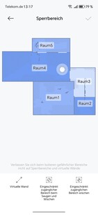 Nell'app si possono definire pareti virtuali o aree riservate. Per una migliore visione d'insieme, si possono anche posizionare i mobili o memorizzare i rivestimenti del pavimento. Il robot divide autonomamente l'area mappata in stanze, che possono essere unite o separate a seconda delle necessità. È anche possibile dare un nome alle mappe e alle singole stanze.