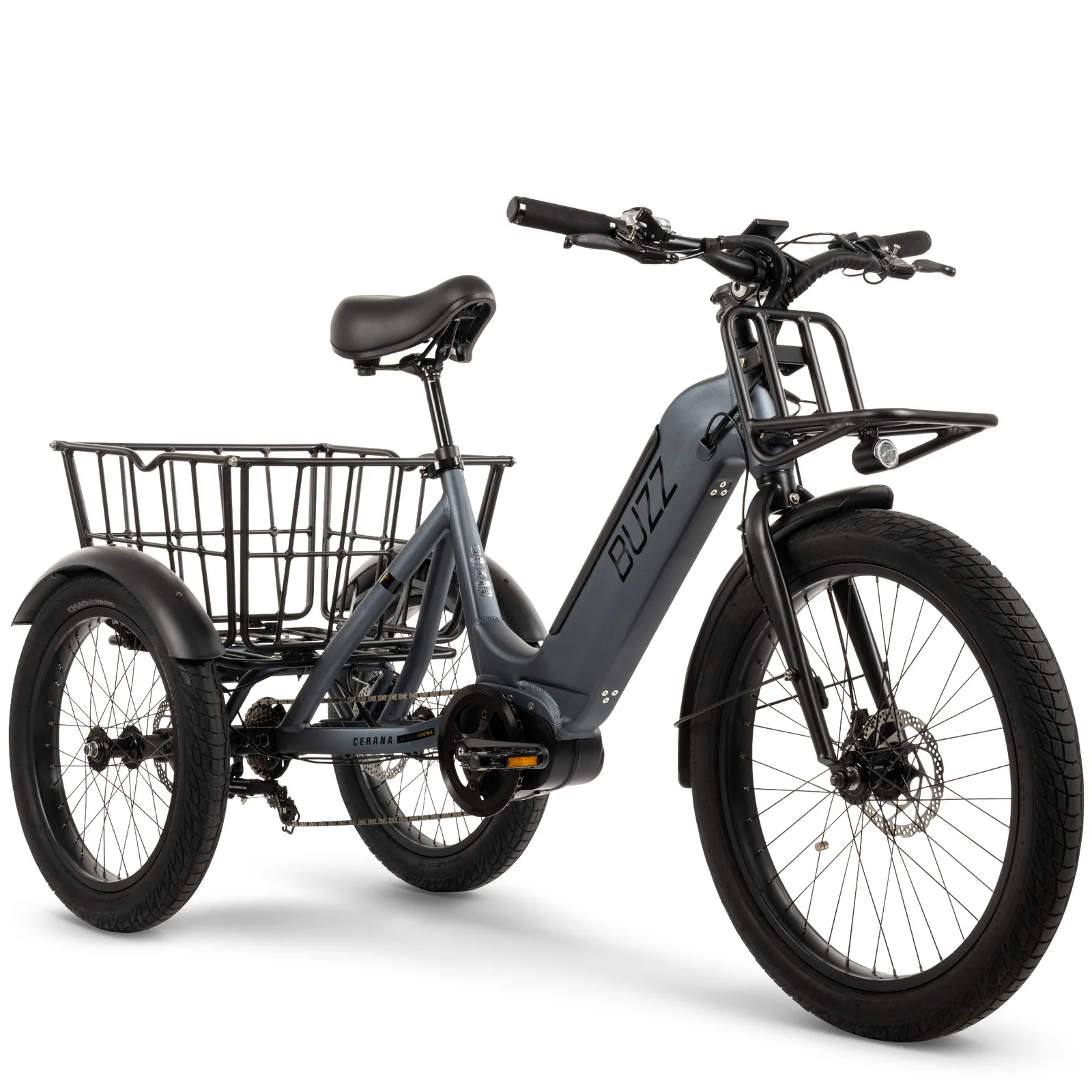 Buzz ha incorporato nel Cerena T2 pneumatici anteriori da 24" x 3" e posteriori da 20" x 3", integrati da freni a disco meccanici. Altre caratteristiche dell'e-trike includono luci integrate, un freno di stazionamento, un portapacchi posteriore e un acceleratore a pollice. Disponibile in un'unica colorazione grigia, l'e-trike Buzz Cerena T2 è ora disponibile per l'acquisto tramite il sito web ufficiale Buzz con un prezzo di partenza di 1.399 dollari.