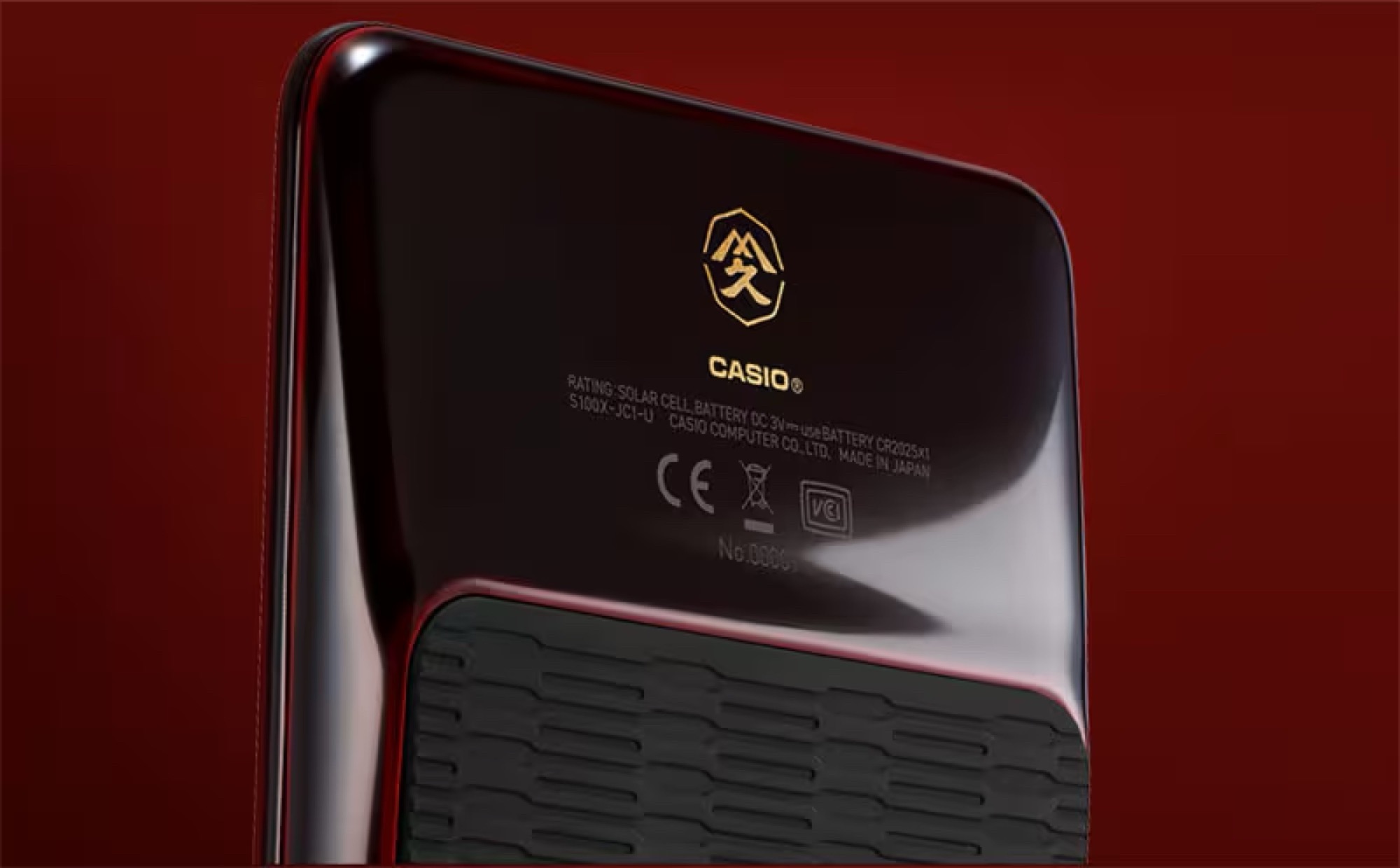 La finitura è laccata a mano con una tecnica artigianale tradizionale giapponese, per creare una superficie nera lucida con una brillantezza speciale. Ogni singolo tasto e la parte anteriore sono incorniciati da un accento di colore rosso. I pulsanti sono etichettati in oro. Il display mostra cifre blu navy su uno sfondo quasi bianco per ottenere il massimo contrasto possibile - secondo Casio, l'LCD FSTN è meno riflettente e ha un contrasto più elevato rispetto alla maggior parte delle calcolatrici tascabili, grazie al doppio rivestimento