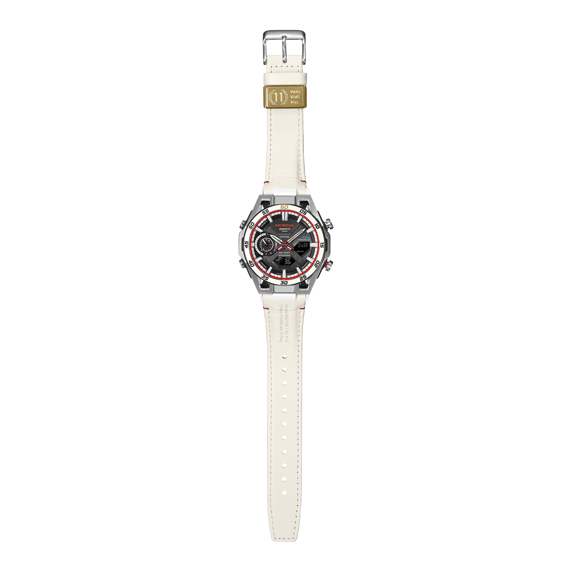 Il Casio Edifice Sospensione ECB-2300HR-1A ha un design bianco, nero e rosso, che celebra i 30 anni dalla prima vittoria di Honda in F1, avvenuta nel 1965 al Gran Premio del Messico con la RA272. Il colore della carrozzeria dell'auto, chiamato Championship White, è utilizzato per la lunetta e il cinturino in pelle dell'orologio. Un altro richiamo alla vittoria è l'indicatore dei 60 minuti color oro e le parole 'Veni, Vidi, Vici' sono incise sul passante del cinturino. Questo modello ha un vetro zaffiro ed è impermeabile fino a 100 metri.
