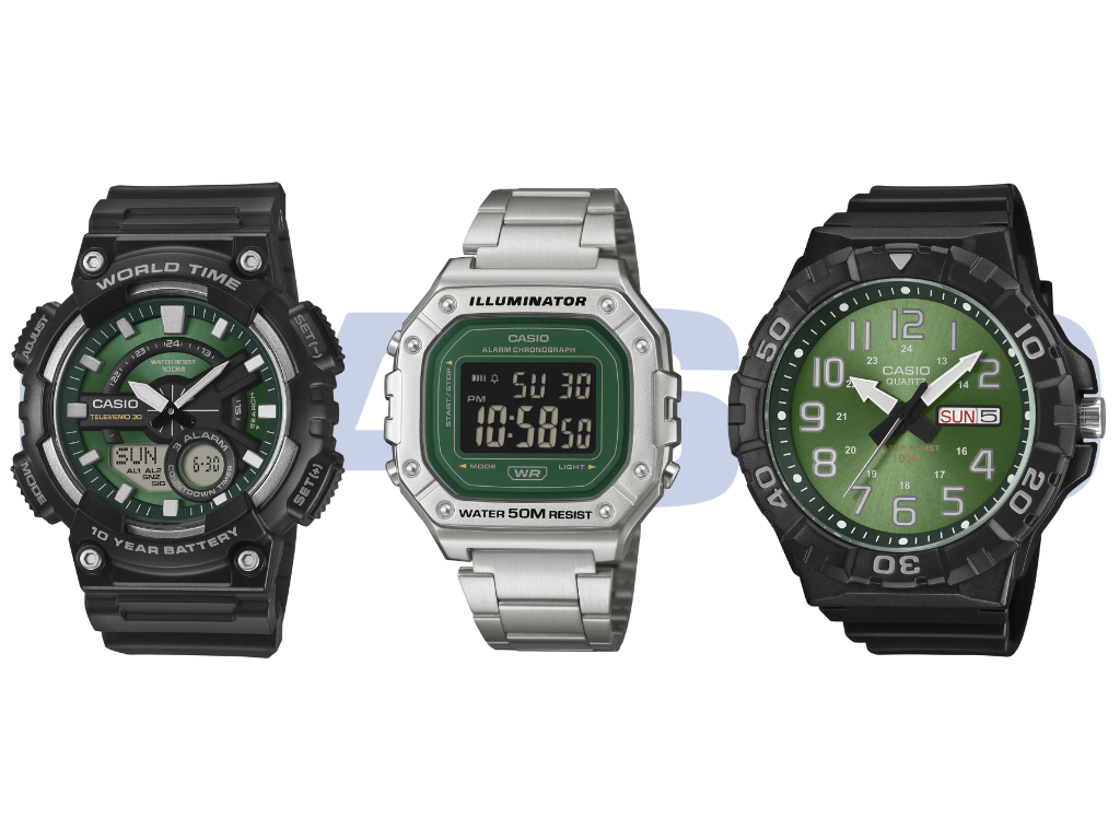 Casio ha lanciato una serie standardizzata "Green Dial" per febbraio 2026, utilizzando tre moduli hardware esistenti. La release comprende i modelli MRW-210H-3BV, AEQ-110W-3A2V e W-218HD-3AV. Piuttosto che una collaborazione limitata, questa serie è più un aggiornamento tattico del catalogo entry-level del produttore.