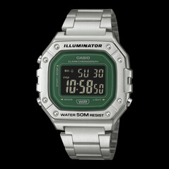 Il W-218HD-3AV è la versione solo digitale ed è l'unico modello della serie dotato di un cinturino in acciaio inossidabile e di una chiusura a tre pieghe. Utilizza un classico design industriale quadrato con dimensioni compatte rispetto al design sovradimensionato degli altri due modelli. È molto facile notare questi compromessi tecnici: la resistenza all'acqua è ridotta a 50 metri e la durata della batteria di 7 anni, pur essendo ottima, è una via di mezzo tra i modelli analogici e ibridi. L'utilizzo di una fascia in metallo aumenta il peso a 85 g, rendendolo il modello più pesante della linea, nonostante abbia l'ingombro della cassa più ridotto.