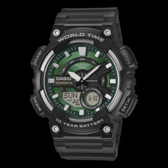 Per gli utenti che hanno bisogno di più dati dai loro orologi, il modello AEQ-110W-3A2V ha un display ibrido analogico-digitale. La sua principale metrica tecnica è un ciclo di batteria di 10 anni alimentato da una cella CR2025. Il modulo include funzioni tradizionali come un database Telememo di 30 voci e il supporto dell'ora mondiale per 30 città. Con i suoi 16,7 mm, è il modello più spesso della collezione, il che è più che altro una necessità a causa dell'impilamento interno richiesto per l'LCD e le lancette meccaniche. Nonostante tutto questo, conserva la resistenza all'acqua di 100 metri che si trova nel modello solo analogico.