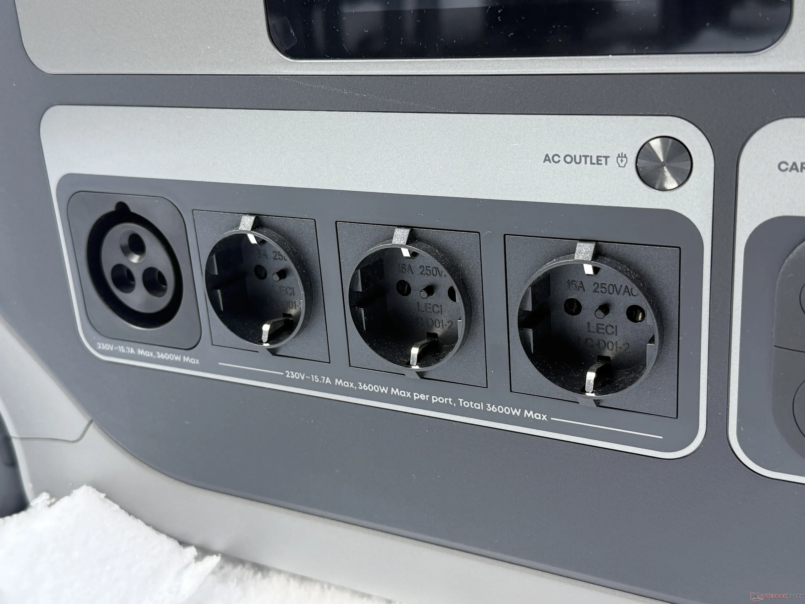 Per quanto riguarda l'ingresso, Anker Solix F3000 offre ancora più opzioni rispetto ai fratelli minori della serie C. Invece di una spina IEC, ha una propria connessione che può fornire fino a 2.990 W a una presa e un massimo di 3.600 W tramite una stazione di ricarica EV.